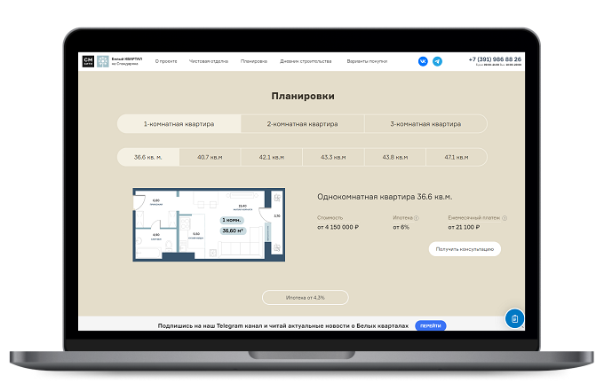 Сбор теплой аудитории с помощью информативных подборок с актуальной недвижимостью. Создание нескольких посадочных страниц с подпиской на канал через чат-бот.