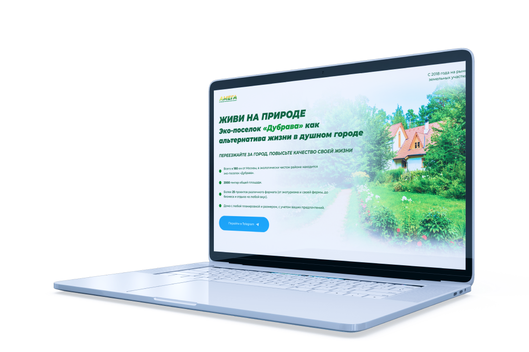 Сбор аудитории на площадку продавца земельных участков. Совместная работа с экспертами заказчика, создание посадочных страниц, использование нескольких каналов продвижения.